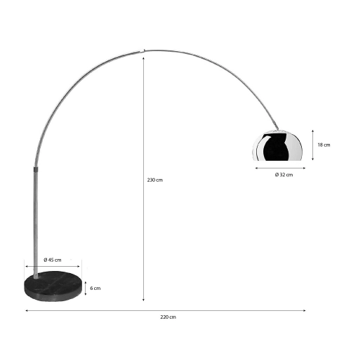 Lampada da Terra Ad Arco Con Piedistallo In Marmo A Piantana E27 Massimo 75 Watt Classe Di Efficienza Energetica A++ Per Soggiorno, Camera Da Letto, Ufficio, Studio 220 x 230 Cm Nero